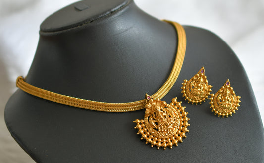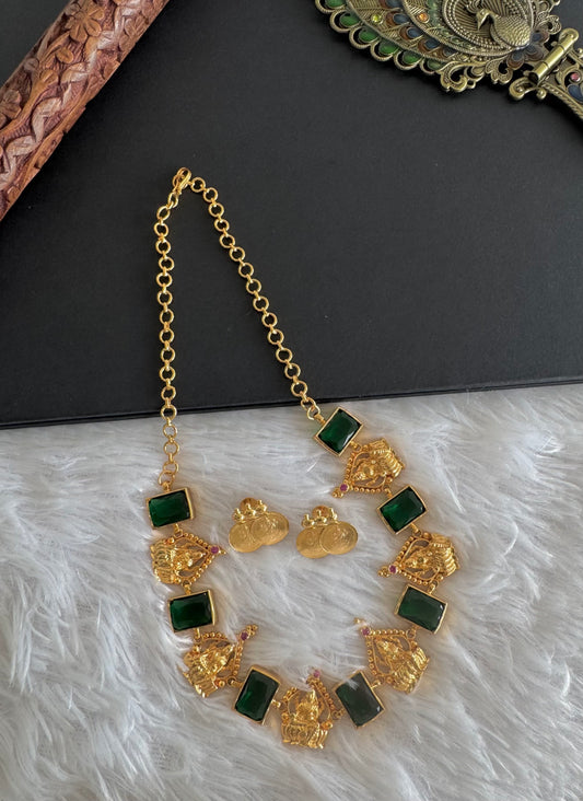 Matte finish kemp stone lakshmi choker/necklace set dj-44332