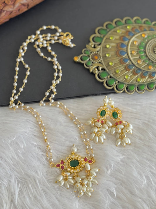 Gold tone Ruby-Green Gutta pusalu Pearl Chain Set dj-52107