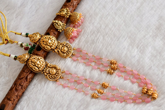 Antique gold tone baby pink beaded lakshmi peacock multi layer haar set dj-52426