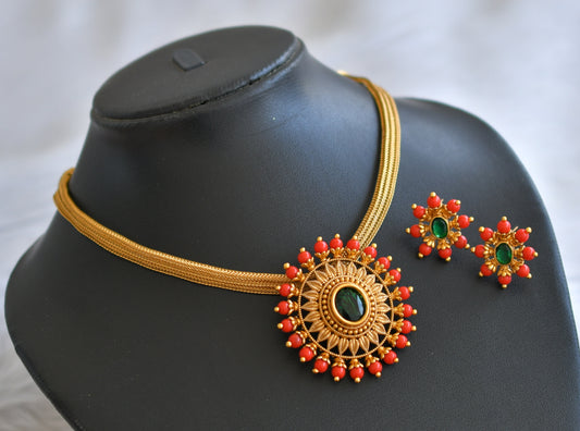 Gold Tone kerala style red palakka Lakshmi Necklace Set Dj-52204