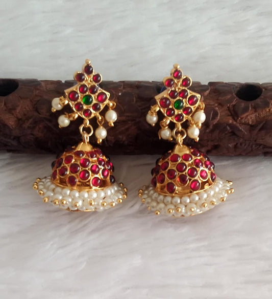 Gold tone ruby lakshmi coin jhumkka dj-32058