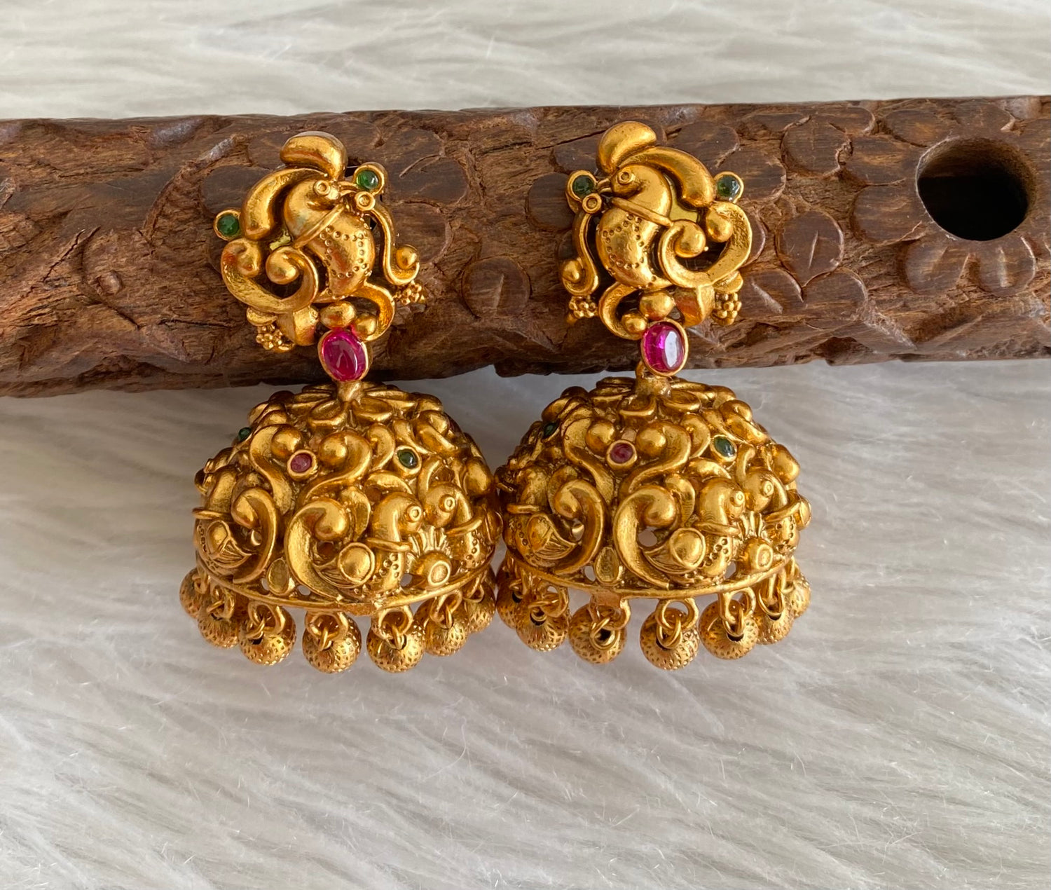 Matte finish pink-green peacock jhumkka dj-53006
