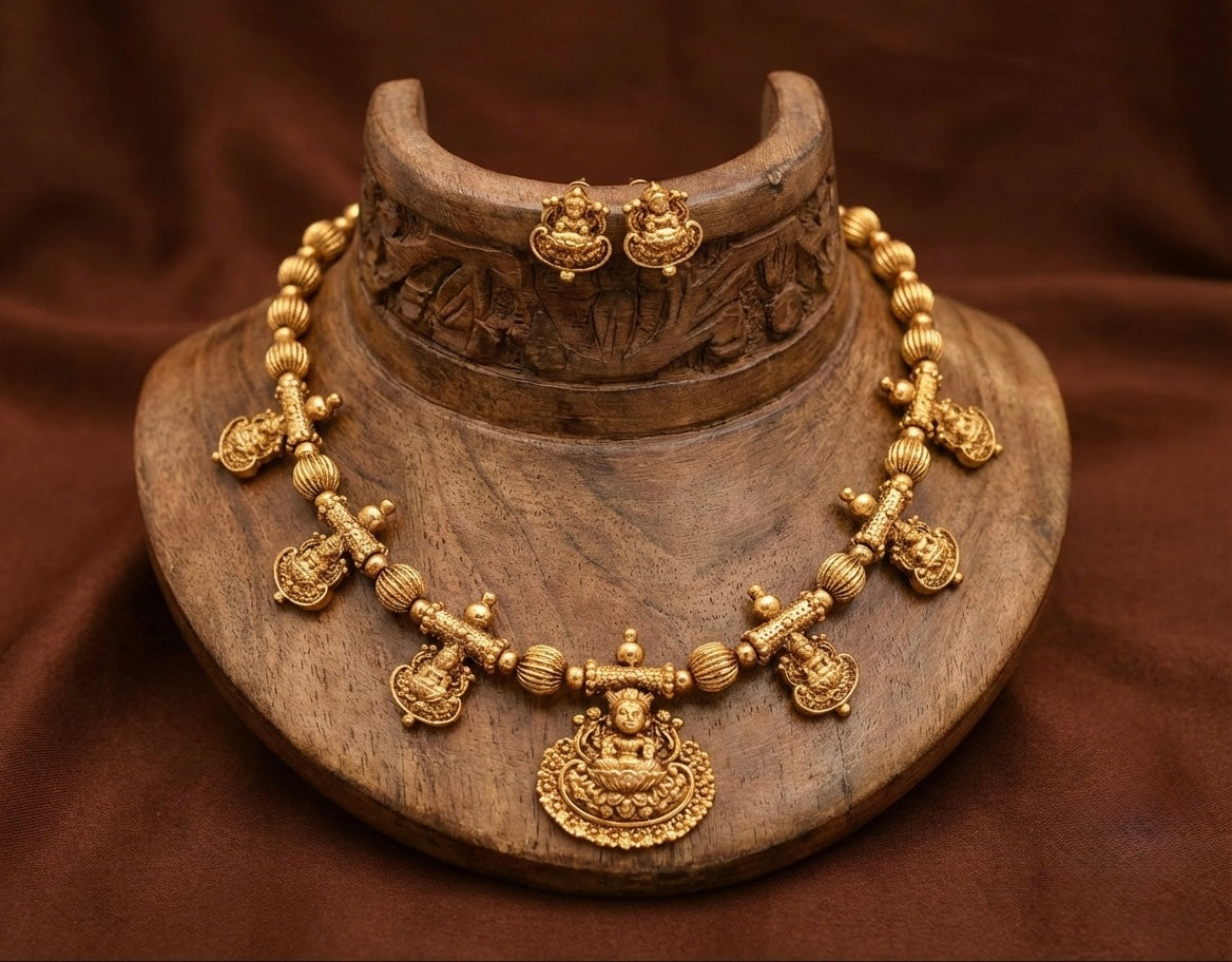 Gold Tone Kerala Style Elakka Thali Choker Dj-33976