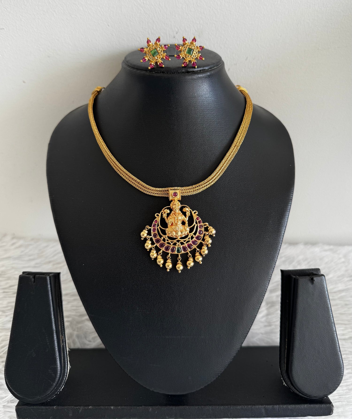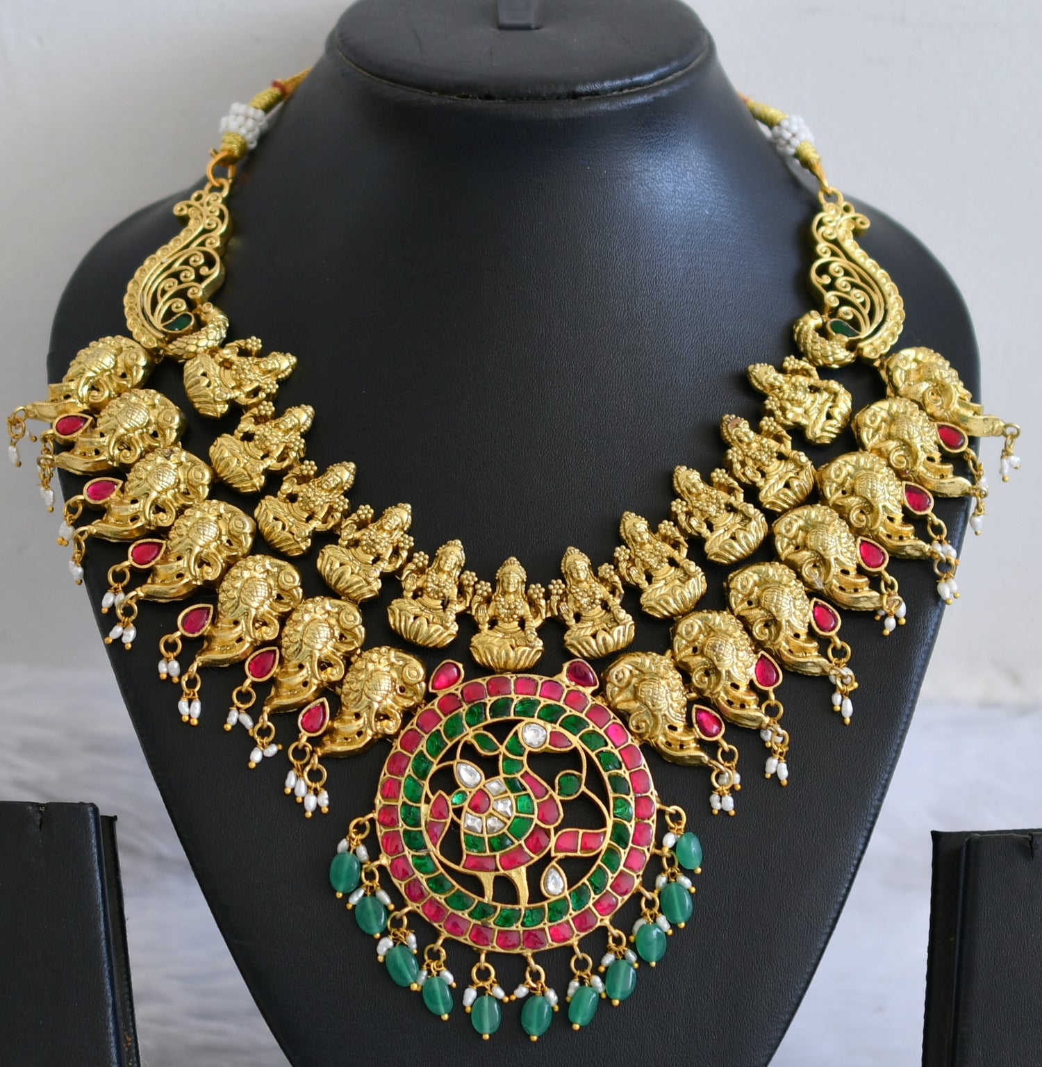 Matte finish kemp stone lakshmi choker/necklace set dj-44332