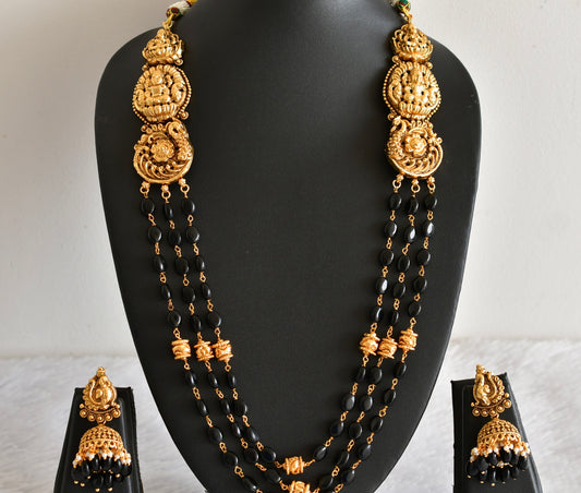 Antique gold tone black beaded lakshmi peacock multi layer haar set dj-52425