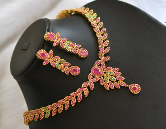 Gold tone semi precious ruby Lakshmi bridal haar set dj-02050