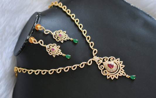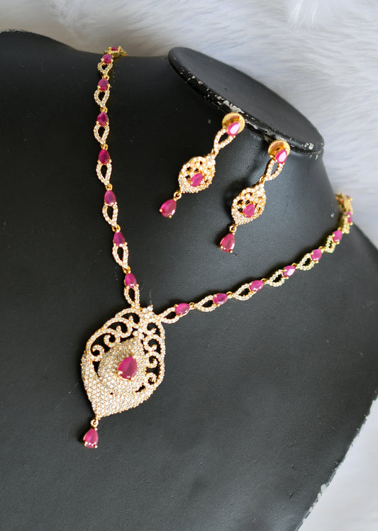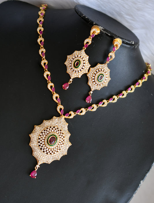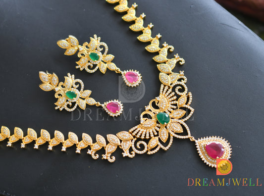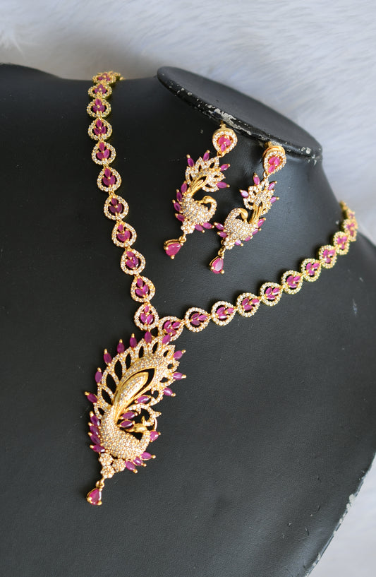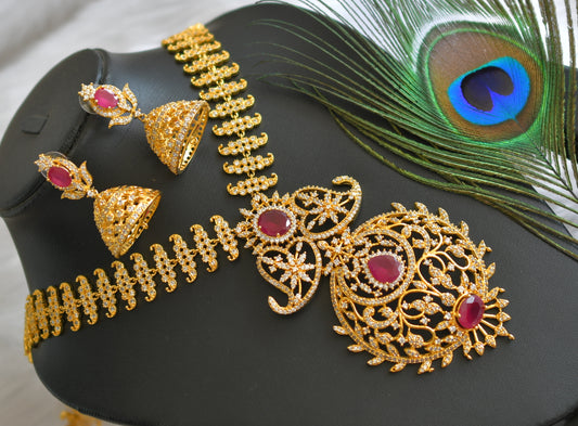 Gold tone Cz- Semiprecious ruby peacock bridal haar set dj-02062