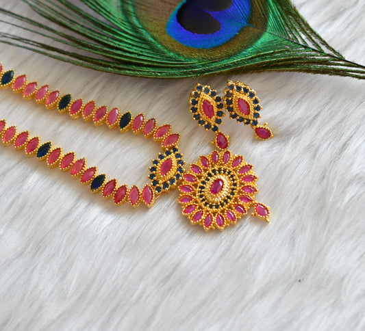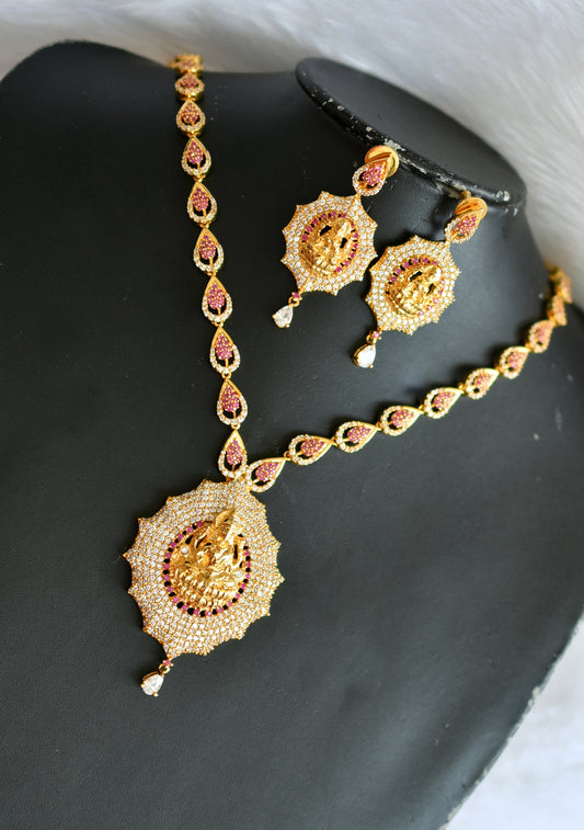 Gold tone semi precious ruby Lakshmi bridal haar set dj-02051