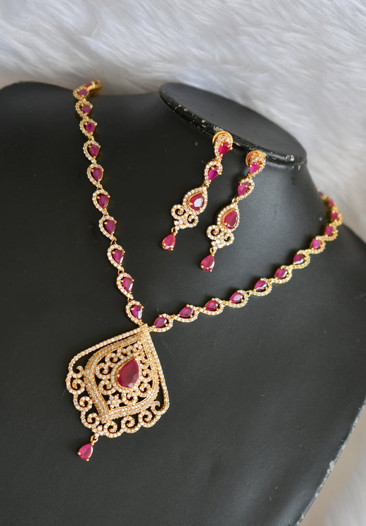 Gold tone cz-ruby-white bridal haar set dj-01897