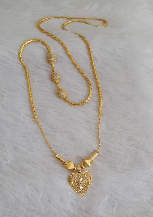 Gold tone christian cross pendant with white stone ball mugappu mangalyam dj-48068