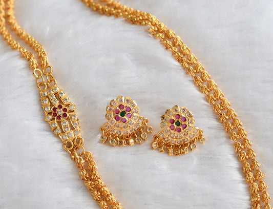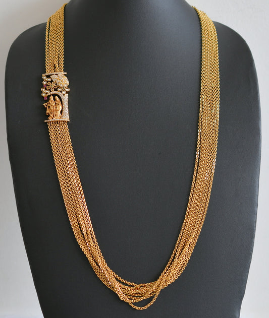 Gold tone 24 inches ruby-green-white lakshmi mugappu chain dj-46871