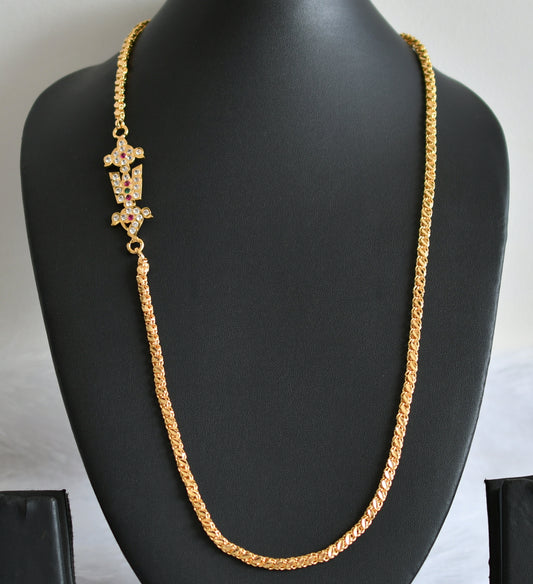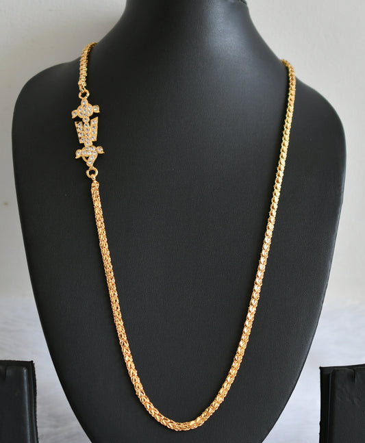 Gold tone ad white shanku-chakra-nama 24 inches mugappu chain dj-49380