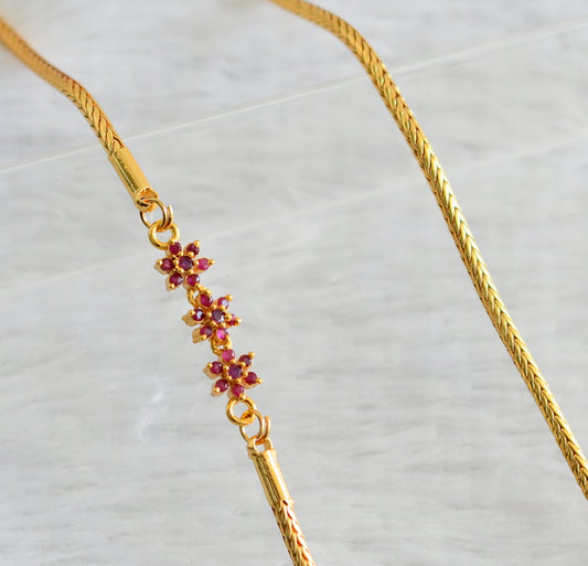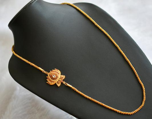 Gold tone ruby-white stone lotus rope chain mugappu chain dj-46384