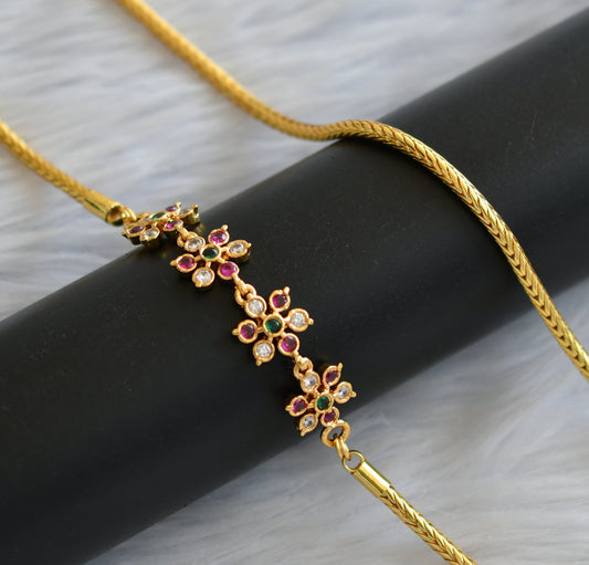 Gold tone ad pink-green-white stone flower mugappu chain dj-45989