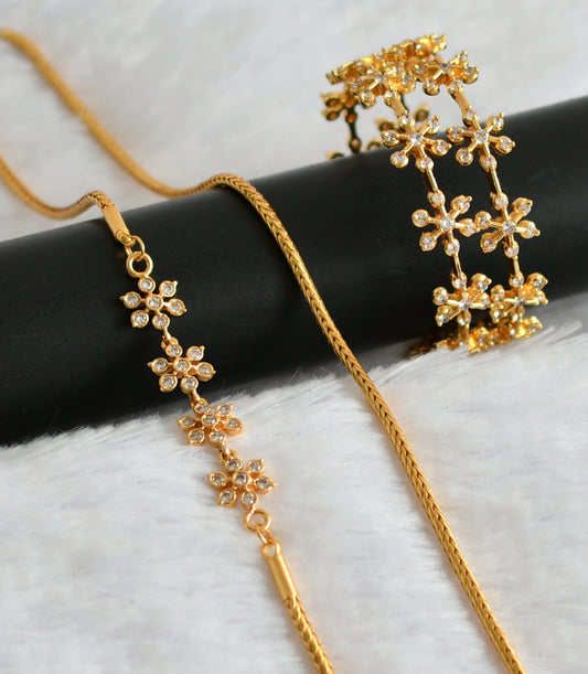 Gold tone 24 inches cz flower mugappu chain with cz flower bangles combo (2.4) dj-46995