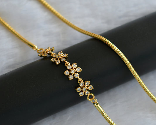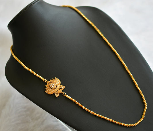 Gold tone cz white stone lotus rope chain mugappu chain dj-46385