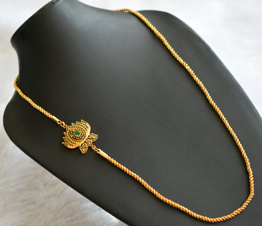 Gold tone green stone lotus rope mugappu chain dj-46387