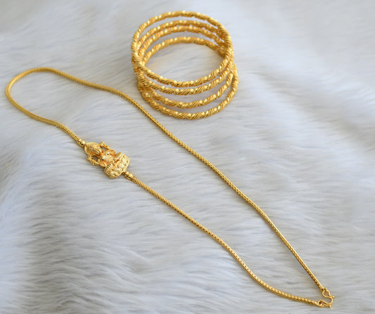 Gold tone 24 inches lakshmi mugappu chain with set of 4 bangles(2.8) dj-45619