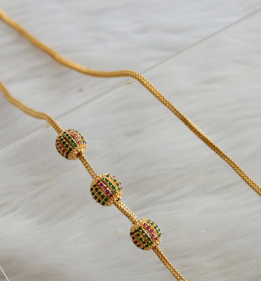 Gold tone 24 inches ruby-green-white ball mugappu chain dj-44640