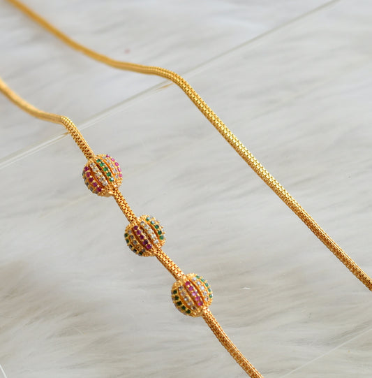 Gold tone ruby-green-white ball mugappu chain dj-44758