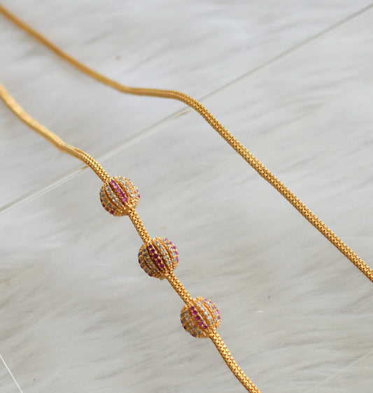 Gold tone 24 inches ruby-white ball mugappu chain dj-44639