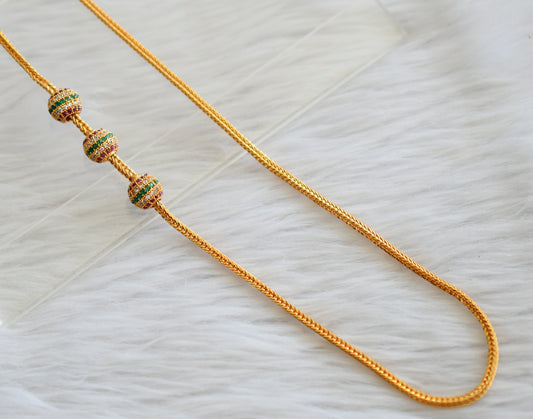 Gold tone 24 inches ruby-green ball mugappu chain dj-44638