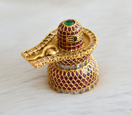 Antique gold tone real kemp-green-white shiva lingam idol/vigraham dj45359