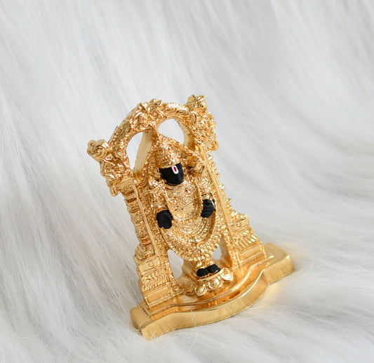 Antique gold tone Kemp-green Shri Balaji Lakshmi kumkum box dj-42944