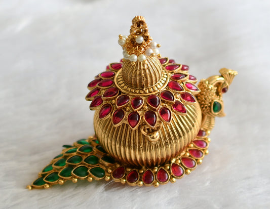 Antique gold tone kemp-green lakshmi peacock kumkum box dj-46647
