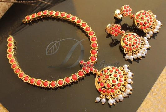 Gold Tone Coral South Indian Style Attigai/Necklace Set DJ18306