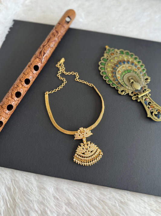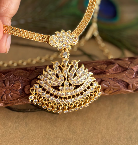 Gold tone South Indian style AD white swan attigai/necklace dj-52211