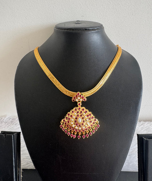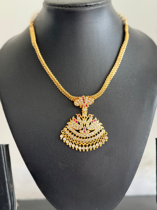 Gold tone South Indian style AD white-ruby swan attigai/necklace dj-52212