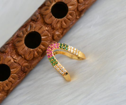 Gold tone cz white-green-ruby vanki finger ring dj-40027