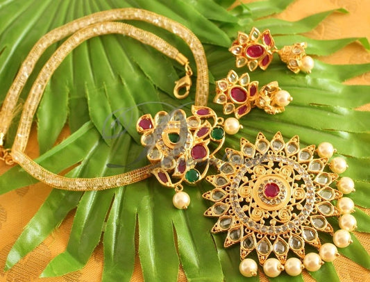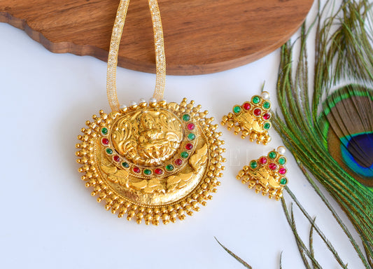Gold tone Cz Ruby-emerald-Pearl Lakshmi Necklace Set- DJ10864