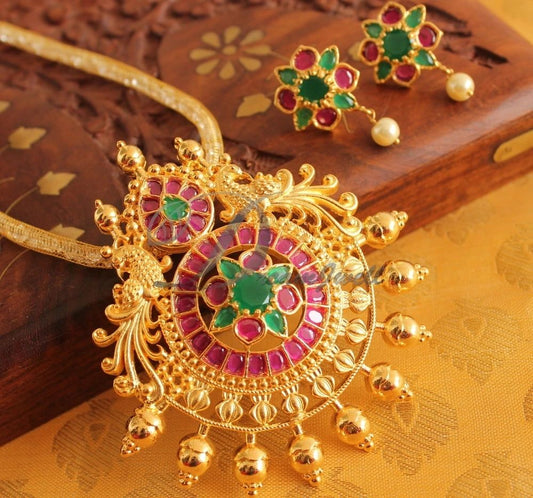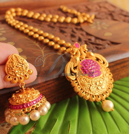 Matte Finish Ruby Peacock Mango Necklace Set-dj11015