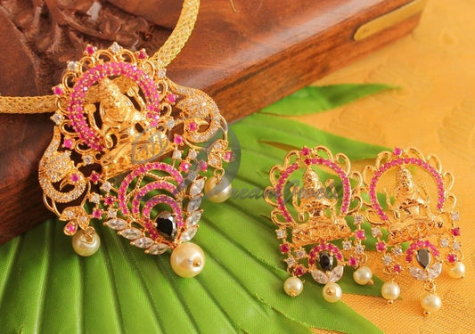 Gold tone Cz Ruby-black Lakshmi Necklace Set -dj11120