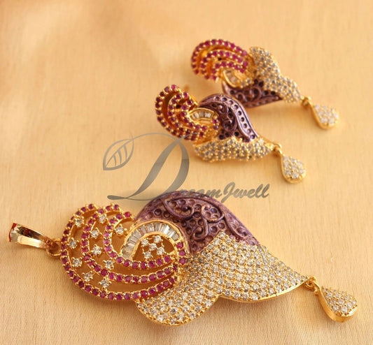 Gold tone Cz -ruby Pendant Necklace Set -dj11237