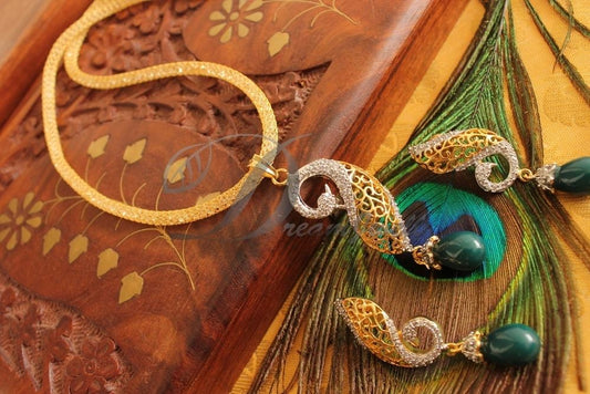 Gold Tone Cz-green Peacock Necklace Set -dj11842