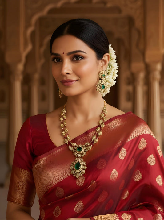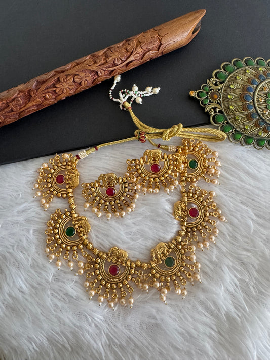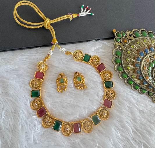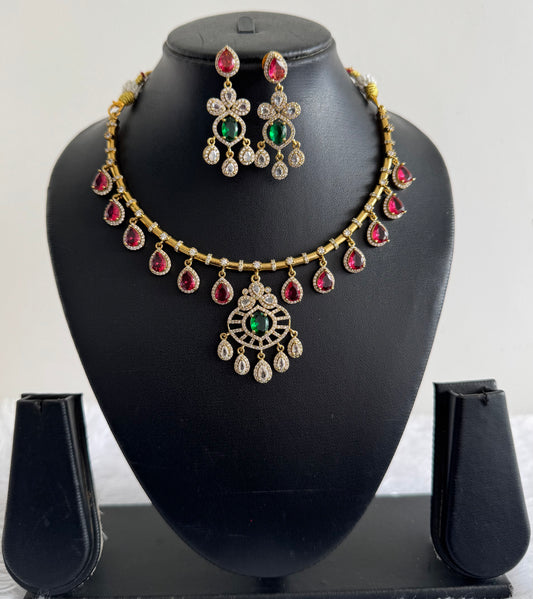 Antique gold tone cz ruby-green kanti necklace set dj-52079