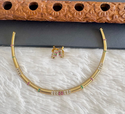 Antique gold tone cz pink-green-white kante necklace set dj-52124