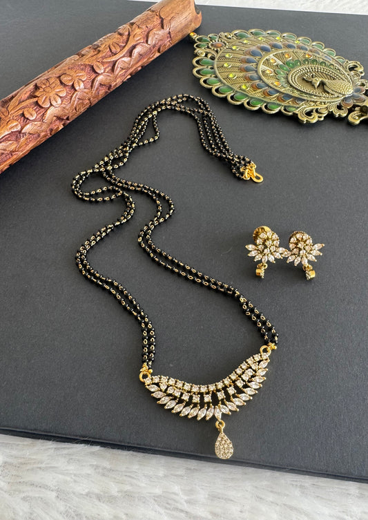 Antique gold tone cz white stone 18 inches mangalsutra set dj-52069