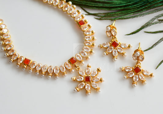 Gold Tone Polki Ruby Necklace Set dj-12638