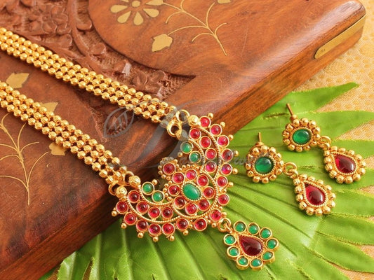 Antique gold tone Maroon-green pearl Necklace Set DJ12641