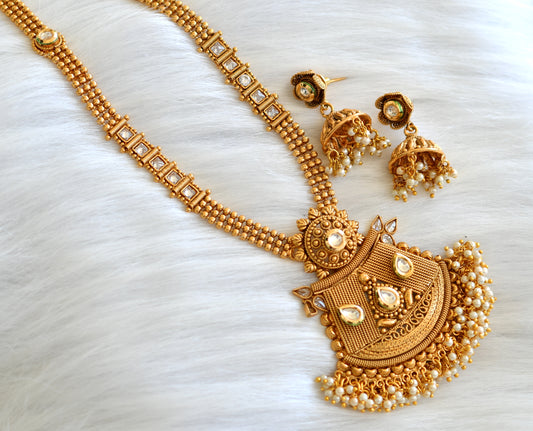 Antique gold tone pearl cluster kundan haar set dj-11243