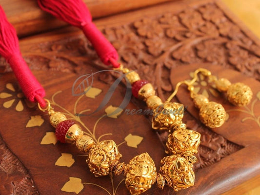 Antique gold tone Beaded Red Necklace Set -dj10880