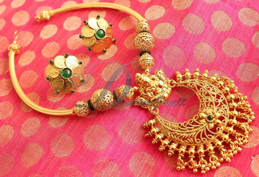 Antique gold tone green Lakshmi Bali Necklace Set -dj10884