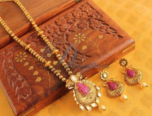 Antique Pink Kundan Chain/Necklace Set DJ11083