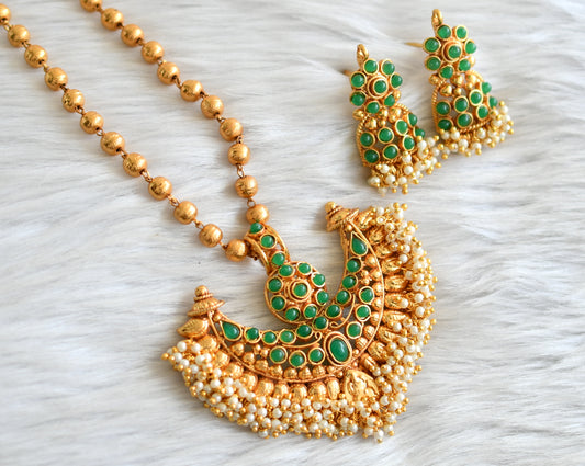 Antique gold tone Kemp-green Lakshmi Necklace Set-dj08922