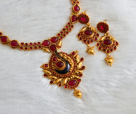 Royal Antique Kemp Meenakari Peacock Necklace Set-dj09163