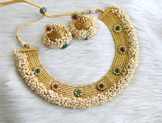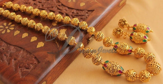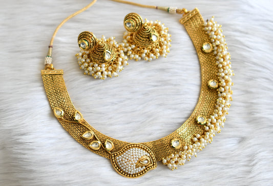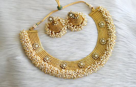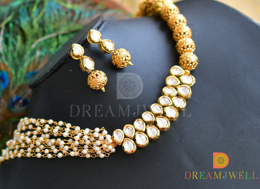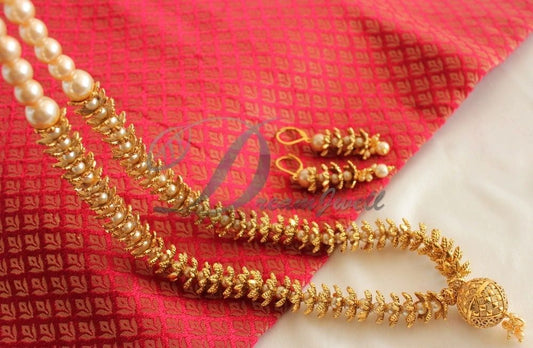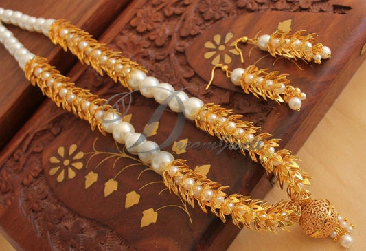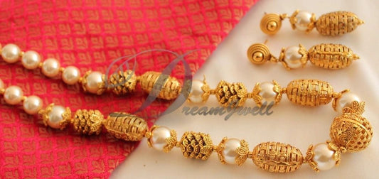 Unique Antique Pearl Golden Beads Designer Necklace Set -dj08013